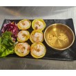 Crispy mini savoury pancakes, topped with king prawns and garnished with dried shallots. Comes with fish sauce (vietnamese dipping sauce)